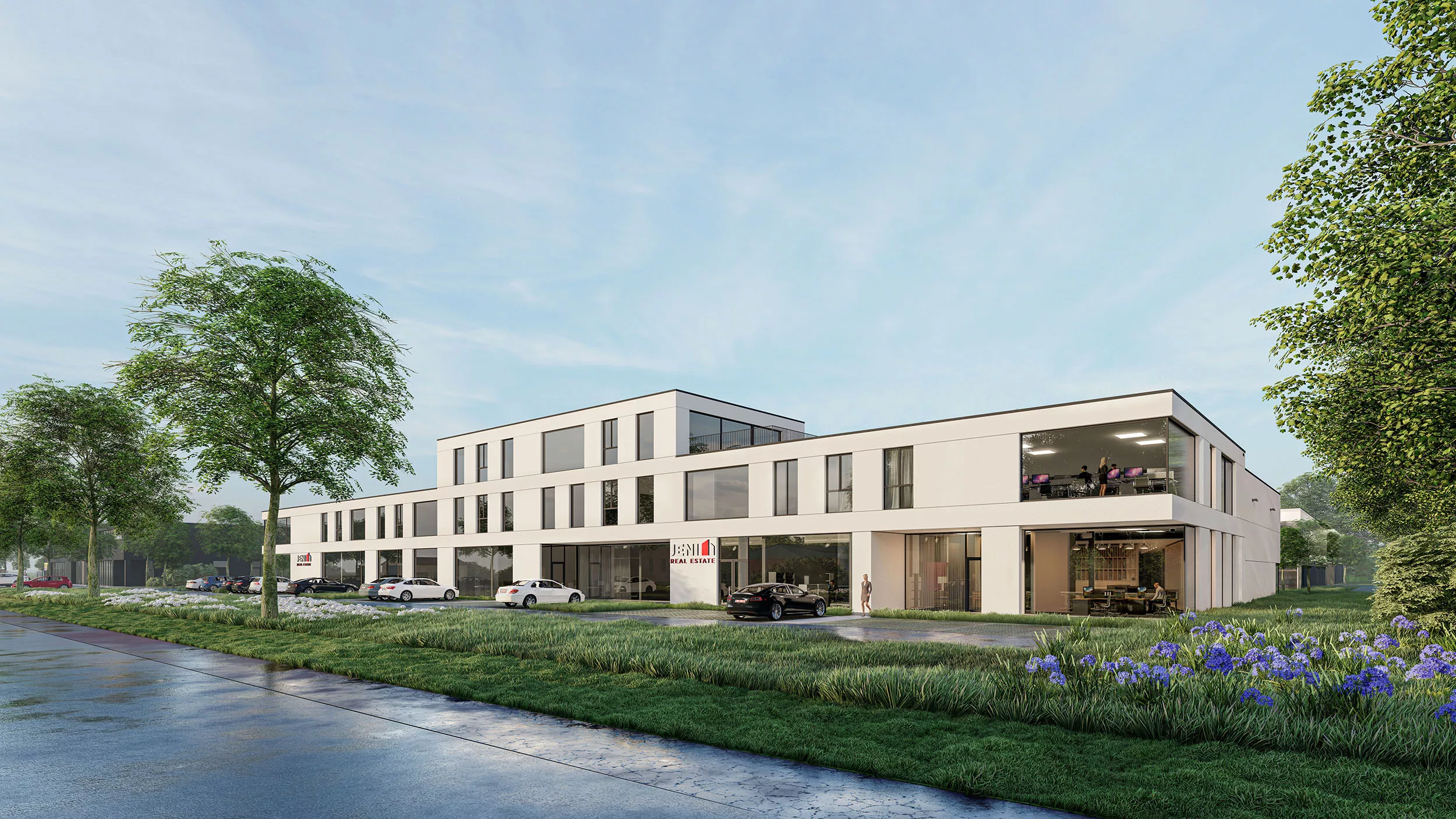 Duurzaamheid en ecologie zijn belangrijke pijlers binnen dit project. Zo krijgen alle bedrijfsunits zonnepanelen en gebruiken ze op die manier volledig groene stroom. Ons integraal en gravitair afwaterend systeem zorgt voor een optimale hemelwaterhuishouding, met groenbuffers die water maximaal laten infiltreren in de bodem.